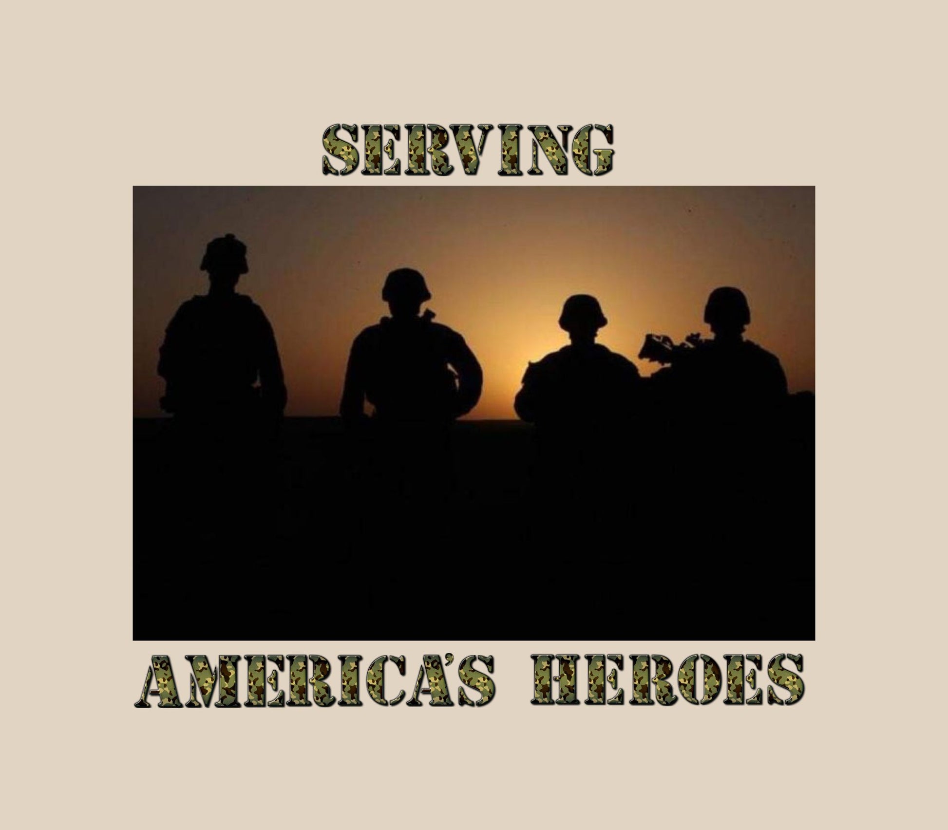 Camo lettering and decal on a sand colored tee. "MUSKOGEE VA LAB" on the front left chest. Decal of silhouette of 4 American Marines that were deployed to Afghanistan, with "SERVING AMERICA'S HEROES" on back. Second soldier from right is from Warner, OK, Muskogee County. Pictures of the design are a mock up of the actual product. Transfer method is sublimation which results in a softer look and feel.