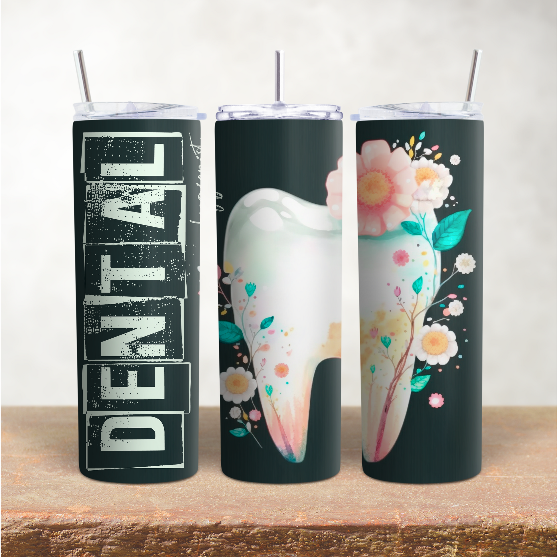 These are skinny tumblers offered in 20oz and 30oz sizes that fit perfectly in your hand. The 30oz will need a cup holder adapter. Customization is available.
