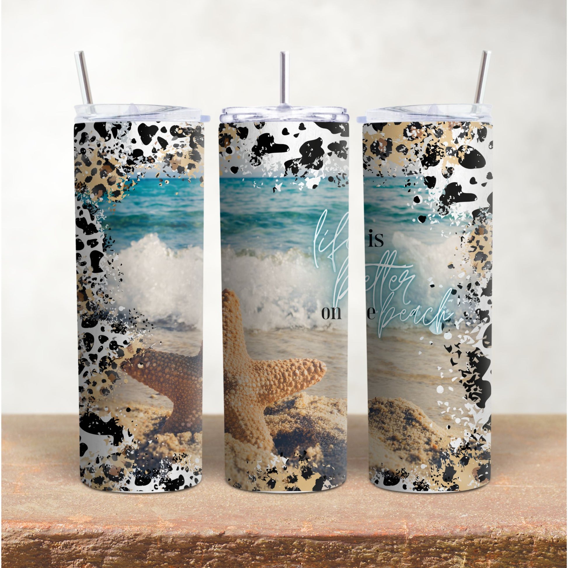These are skinny tumblers offered in 20oz and 30oz sizes that fit perfectly in your hand. The 30oz will need a cup holder adapter. Customization is available.