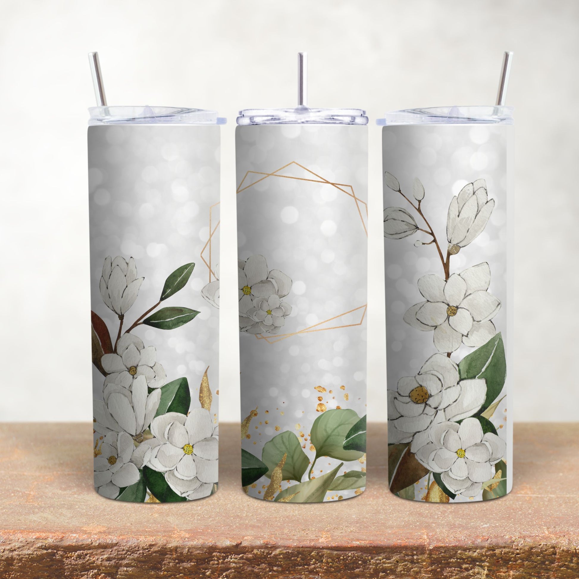These are skinny tumblers offered in 20oz and 30oz sizes that fit perfectly in your hand. The 30oz will need a cup holder adapter. Customization is available.