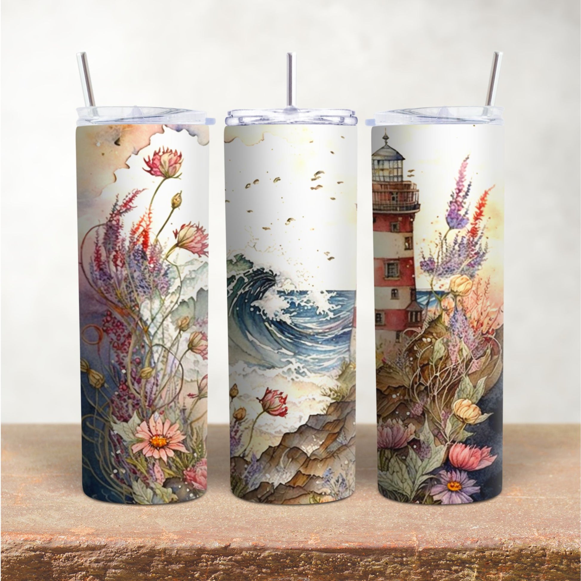 These are skinny tumblers offered in 20oz and 30oz sizes that fit perfectly in your hand. The 30oz will need a cup holder adapter. Customization is available.