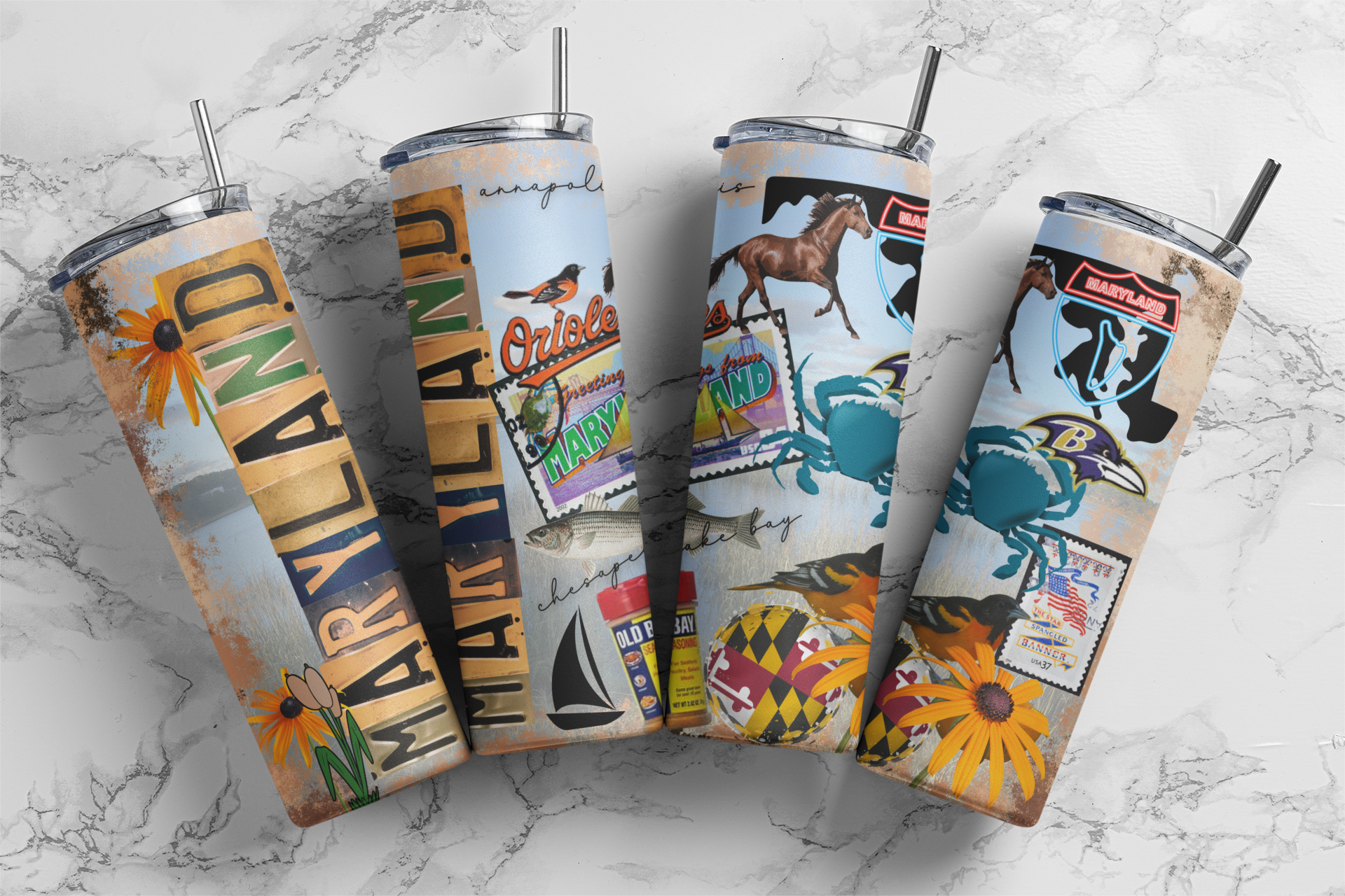 Show pride in your state with one of these collage style tumblers! Grab one for you and a friend!
