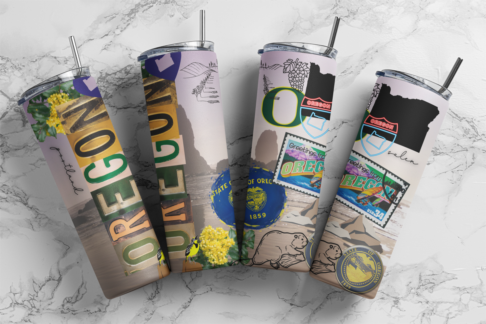 Show pride in your state with one of these collage style tumblers! Grab one for you and a friend!