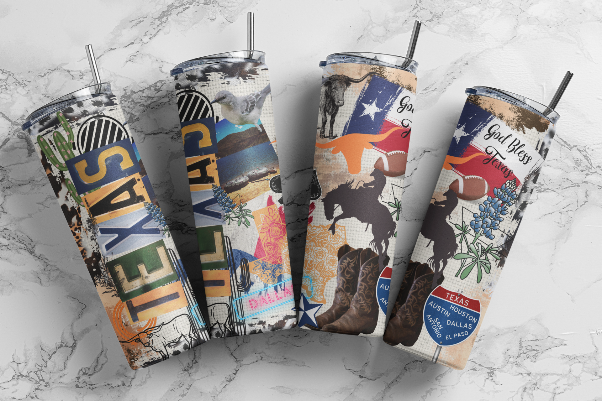 Show pride in your state with one of these collage style tumblers! Grab one for you and a friend!