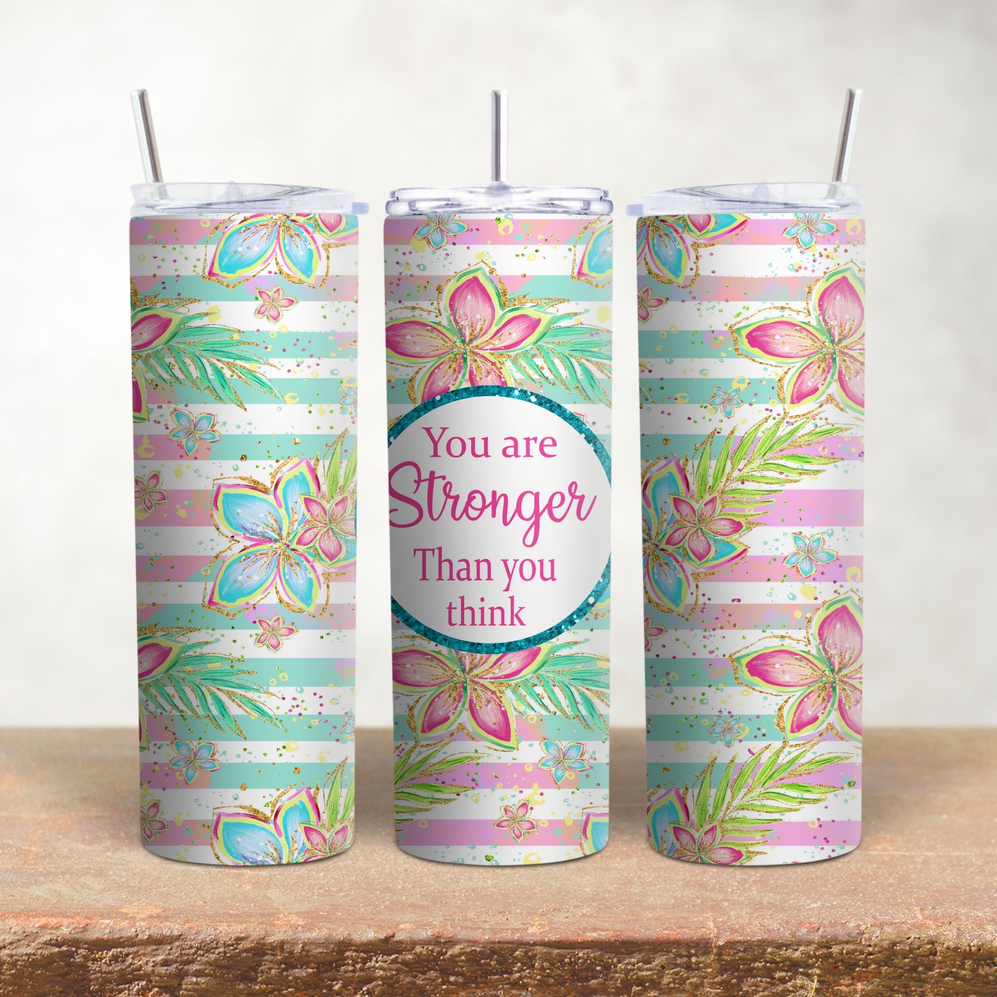 These are skinny tumblers offered in 20oz and 30oz sizes that fit perfectly in your hand. The 30oz will need a cup holder adapter. Customization is available.