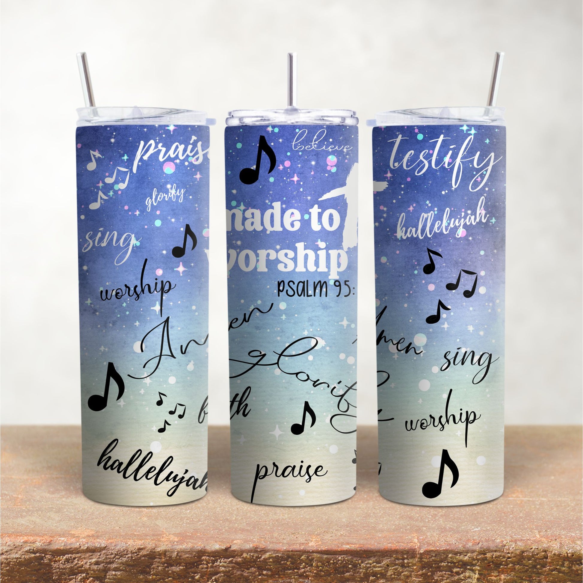 These are skinny tumblers offered in 20oz and 30oz sizes that fit perfectly in your hand. The 30oz will need a cup holder adapter. Customization is available.
