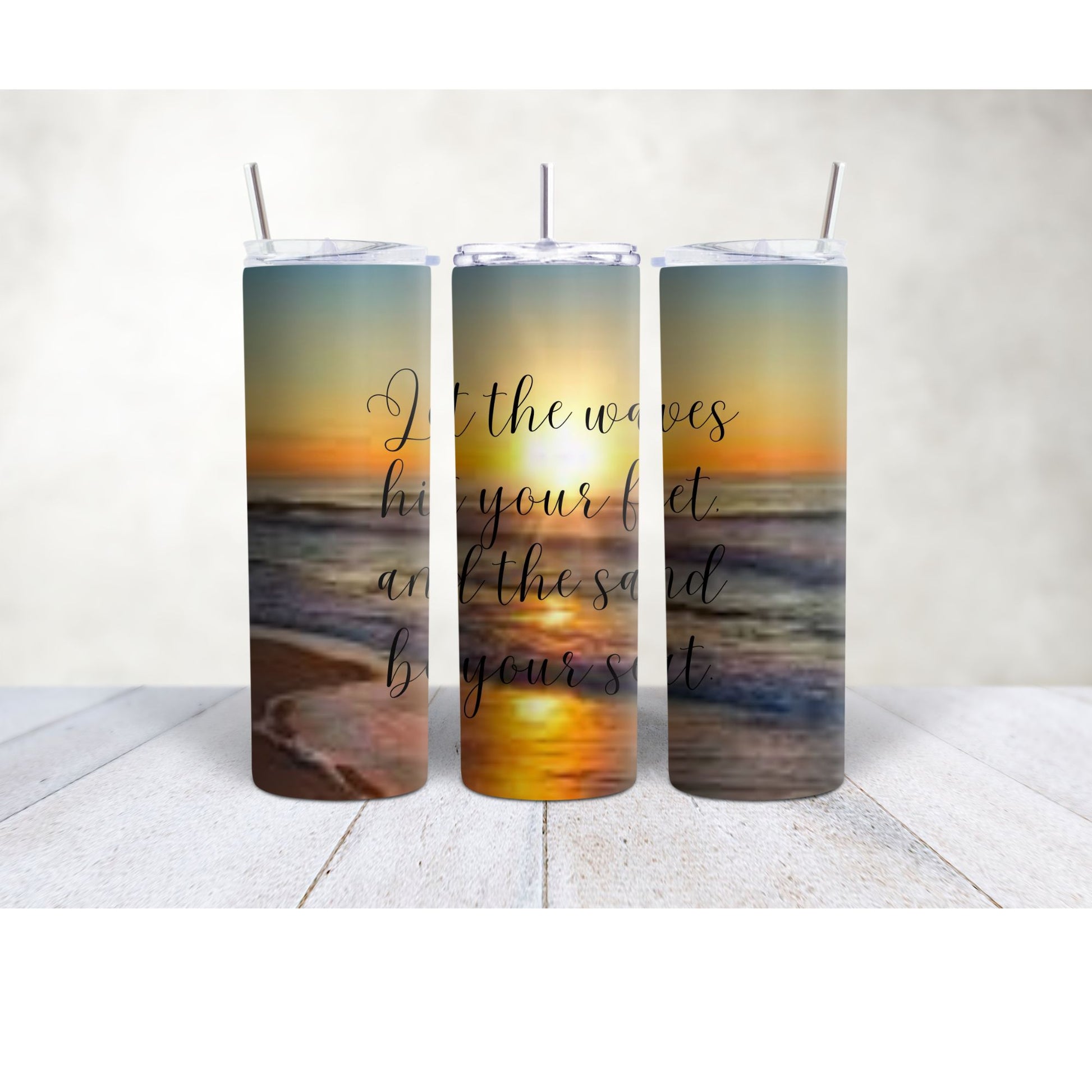 These are skinny tumblers offered in 20oz and 30oz sizes that fit perfectly in your hand. The 30oz will need a cup holder adapter. Customization is available.
